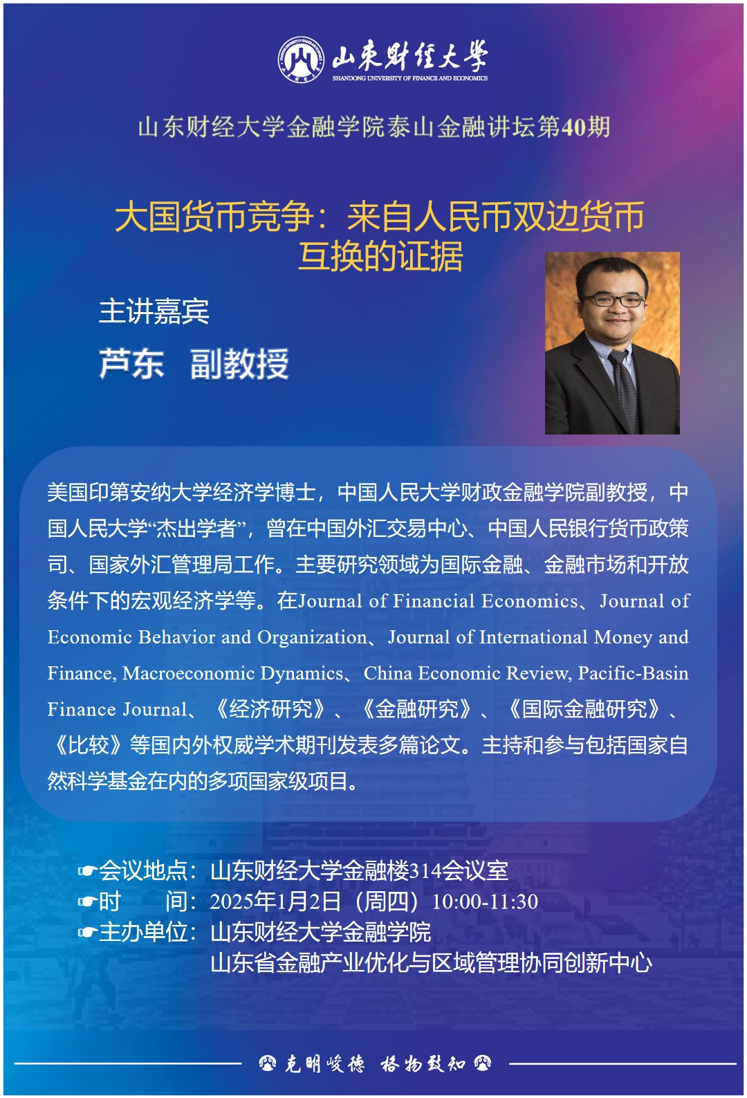 芦东,美国印第安纳大学经济学博士,中国人民大学财政免费成人影片 副教授,中国人民大学“杰出学者”,曾在中国外汇交易中心、中国人民银行货币政策司、国家外汇管理局工作。主要研究领域为国际金融、金融市场和开放条件下的宏观经济学等。在Journal of Financial Economics、Journal of Economic Behavior and Organization、Journal of International Money and Finance, Macroeconomic Dynamics、China Economic Review, Pacific-Basin Finance Journal、《经济研究》、《金融研究》、《国际金融研究》、《比较》等国内外权威学术期刊发表多篇论文。主持和参与包括国家自然科学基金在内的多项国家级项目。