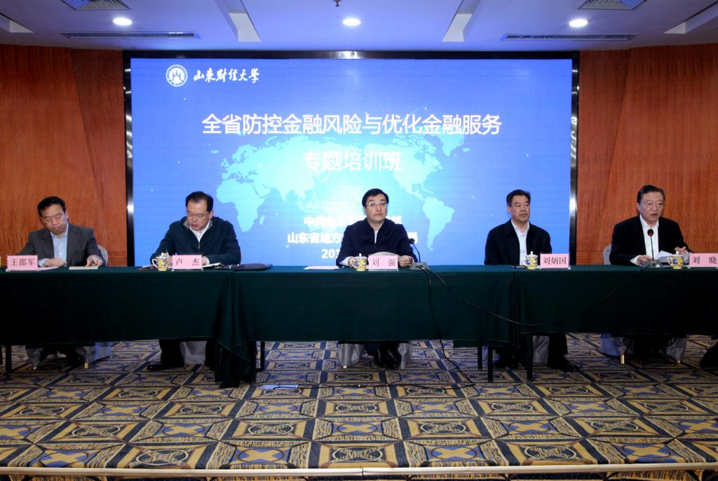 11月6日-9日,由山东省委组织部、山东省地方金融监管局主办的全省防控金融风险与优化金融服务专题培训班在我校舜耕校区举办。山东省副省长刘强在开班仪式做动员讲话,省委组织部副部长兼省委非公有制经济组织和社会组织工委书记刘炳国、省政府副秘书长卢杰、我校党委书记王邵军出席了开班仪式。参加培训班的学员有山东省各地市政府分管副市长及市金融办主任、全省34个县政府分管副县长、省发改委、省经信委、省科技厅、省公安厅、省财政厅、省农业厅、省商务厅等部门的分管领导。