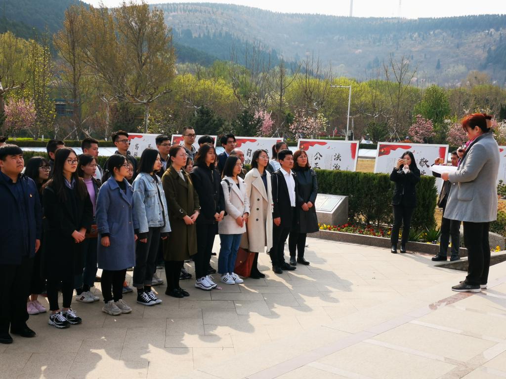2019年4月2日一大早,免费成人影片 党委副书记范志毅带队,免费成人影片 教工党员代表、研究生和本科生党支部书记、学生党员积极分子代表一行四十余人来到位于长清的山东老战士纪念广场,开展学习和纪念活动。