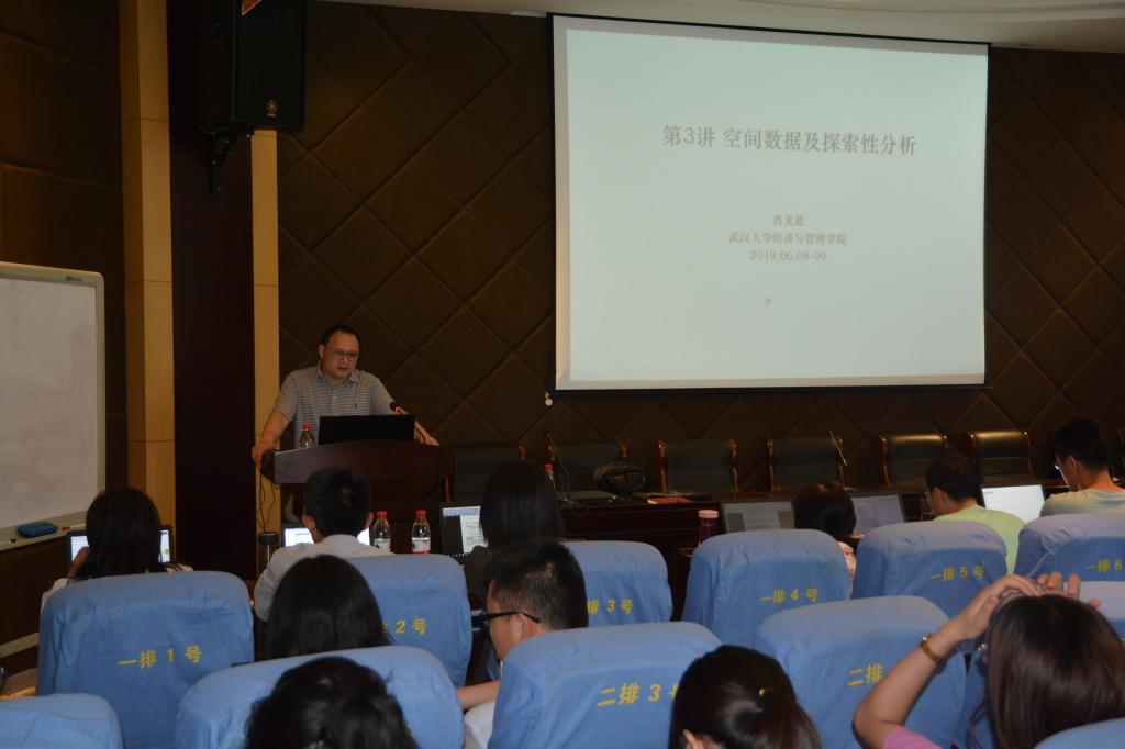 肖光恩老师本次讲授的空间计量实训课程名为《用stata学习空间计量经济学》。肖老师首先为师生们讲授了空间计量经济学的基本原理,空间计量模型可以运用的研究领域,横截面空间计量模型和面板空间计量模型等的估计方法,空间计量模型的最新发展等;并传授了如何使用stata软件对空间计量模型所使用数据进行管理,对空间计量模型进行估计和输出。