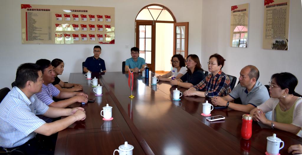 工作室成员在施家崖村委会张书记举座谈,座谈会上张书记表示村里按照“支部+合作社+基地+农户”的模式,不断强化党支部管理和考核,成立了农村合作社、实行股份制和土地流转,让施家崖村不但有荷花飘香,更有蔬菜瓜果遍地的景象,现有白莲藕350亩,年产优质白莲藕800吨,产值1000万元;有成熟期果园200亩,内有苹果、核桃、葡萄、桃等多种经济作物,建设了2公里的蔬菜景观长廊,观光道路、停车场和餐饮服务等设施齐全。张书记以习近平总书记山东考察时的讲话激励,坚持说一千一万,增加农民收入是关键建设目标,带领村民从人均年收入1万增长到3万村集体收入从无到有,现年收入50余万。不仅如此村里列扶贫帮困基金饮水补贴春节中秋发放钱物、对高龄老人发放生活补助等方式惠及广大群众。在此基础上建设党群服务中心、幸福院、日间照料中心、中心卫生所、乡村大舞台、群众活动室等配套设施,开展文明创建活动,成为党员群众凝心聚力的阵地堡垒,使村民切实感受到发展建设的成果。