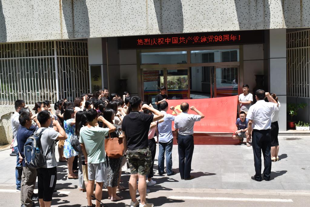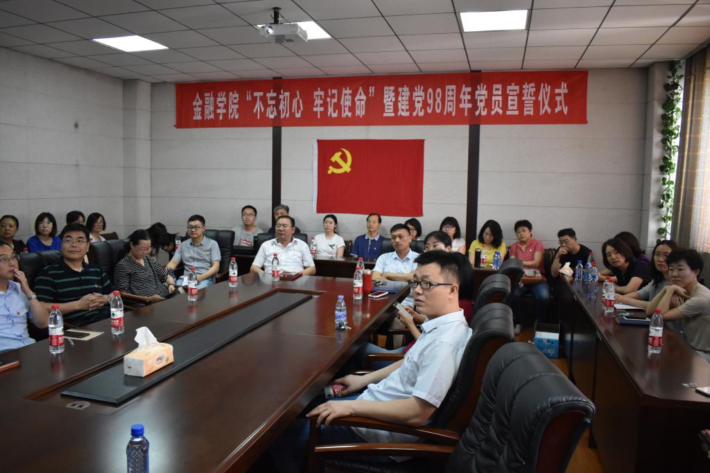课后,学院与会党员在金融楼前,面向党旗,庄严宣誓,重温他们对党的坚定信念和为党的事业奋斗终身的决心。