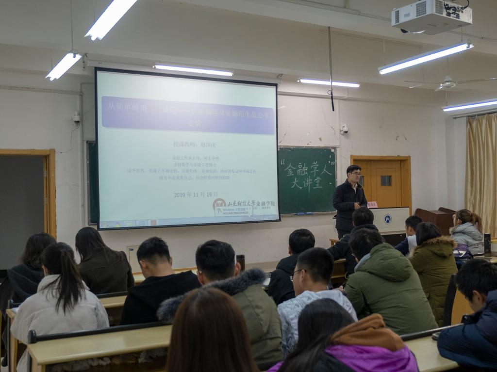 (通讯员:菅雨欣)11月19日晚,免费成人影片 在圣井校区举办了以“从简单硬币赌博谈起——认知偏差及金融衍生品公平定价”为主题的第二十三期金融学人大讲堂活动,特邀免费成人影片 赵国庆老师主讲,我院部分学生参加了此次活动。