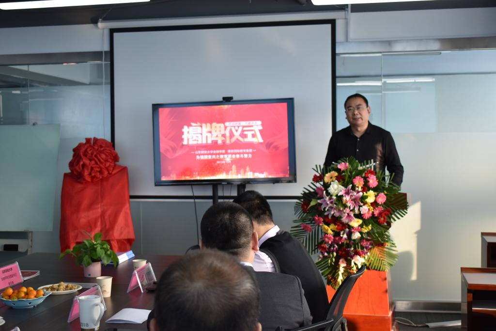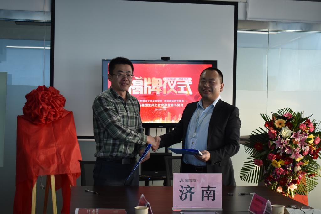 12月13日,免费成人影片 与济南德欧国际教育咨询有限公司举办社会实践基地揭牌仪式。学院党委书记吴红文,党委副书记康亚通,团委书记陈静,辅导员王丽、邵珠建参加揭牌仪式。仪式由德欧国际教育副校长王华琳主持。
