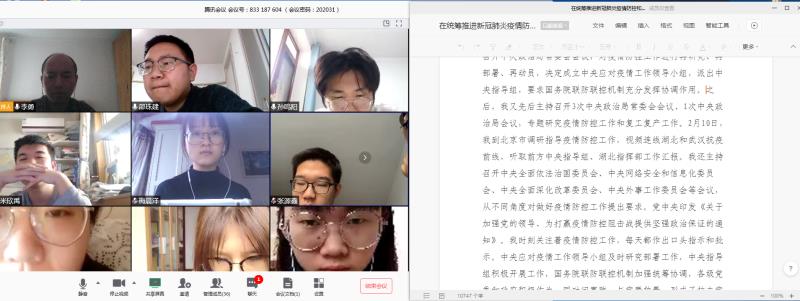 学院各党支部充分运用互联网手段,通过学习强国-强国视频会议、腾讯会议等平台开展线上支部生活,学习重要讲话明确了当前抗“疫”工作的有效做法、成功经验和潜在的风险更加清晰,明确了抗击疫情和促进经济社会发展两个大局的总体工作思路,明确了党中央对党员狠抓工作落实、增强忧患意识、提高工作本领的要求。