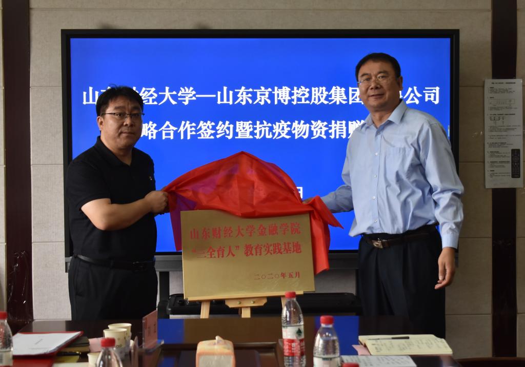 随后,学院党委副书记范志毅与山东京博控股有限公司副总裁、财务总监张静签订战略合作框架协议书。院长彭红枫为京博控股集团颁发抗疫物资捐赠证书,并与褚北祥副总裁共同为免费成人影片 社会实践基地揭牌。学院党委书记吴红文与褚北祥副总裁共同为“三全育人”教育实践基地揭牌。吴书记向褚北祥、张静、李劲松、刘龙颁发创业就业导师证书。