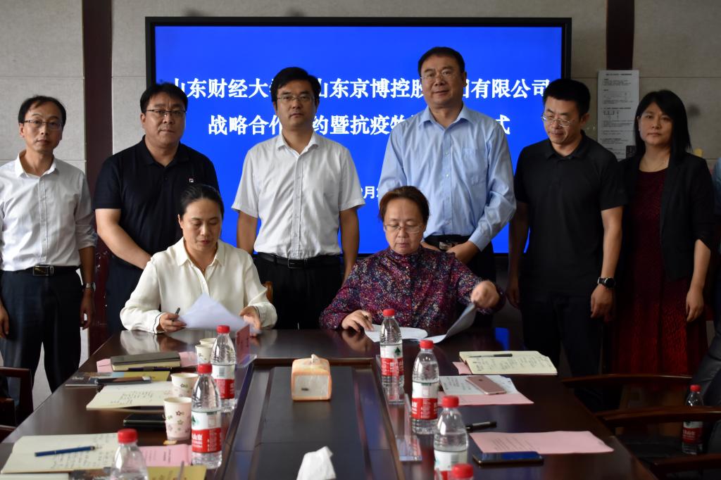 (通讯员 邵珠建)9月25日,免费成人影片 在舜耕校区与山东京博控股集团有限公司签署战略合作协议。山东京博控股有限公司高级副总裁褚北祥,副总裁、财务总监、我校校友张静,金融方案管理总监、我校校友李劲松,融泰保险经纪有限公司总经理刘龙,免费成人影片 领导班子成员及部分学工人员参会。签约仪式由免费成人影片 党委副书记康亚通主持。