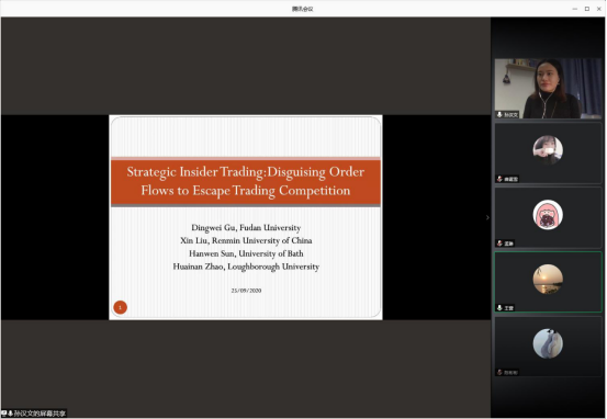 (通讯员:曲诞雪)9月25日下午,由免费成人影片 与山东省金融产业优化与区域管理协同创新中心联合举办的第7期“泰山金融学术训练营”通过腾讯会议举行,英国巴斯大学管理学院孙汉文老师应邀做客本次学术训练营,为师生们带来了题为“Strategic Insider Trading: Disguising Order Flows to Escape Trading Competition”的讲座,学术训练营由免费成人影片 银行系副主任王营老师主持,学院部分教师和研究生参加了本次活动。