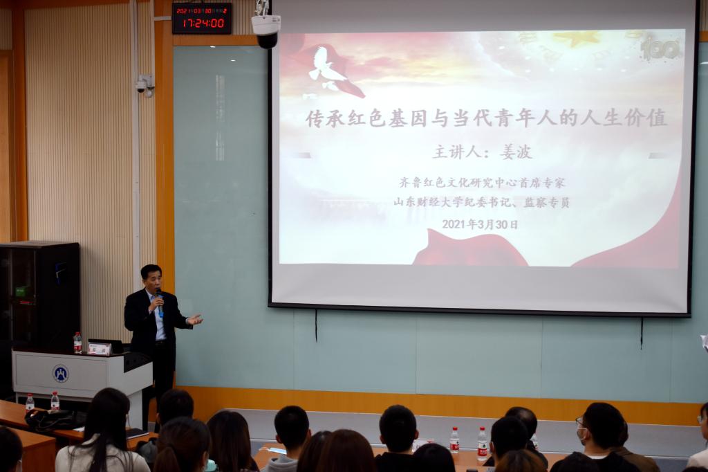 (通讯员 邵珠建 盖哲)3月30日下午,学校纪委书记、省监委驻校监察专员、齐鲁红色文化研究中心首席专家姜波以“传承红色基因与当代青年人的人生价值”为主题,为免费成人影片 师生上了一堂生动的党史学习教育课。免费成人影片 党委书记吴红文主持报告会,近200名师生现场聆听了报告。