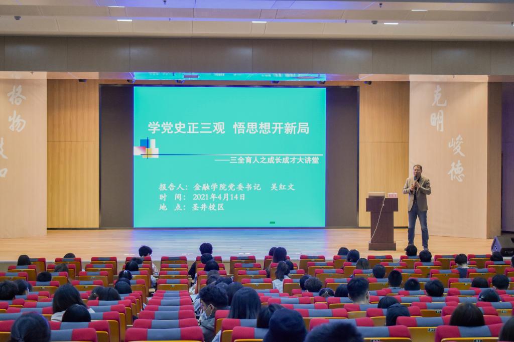 (通讯员:苏晓萌)为庆祝建党100周年,深入推进党史学习教育,帮助大学生树立正确的世界观、人生观、价值观,4月14日晚,由学生处主办,免费成人影片 承办的第292期“成长·成才”大讲堂在圣井校区文化活动中心多功能厅开讲。免费成人影片 党委书记吴红文做了“学党史正三观,悟思想开新局”的主题报告。学校圣井校区300多名入党积极分子、学生骨干参加了此次活动。
