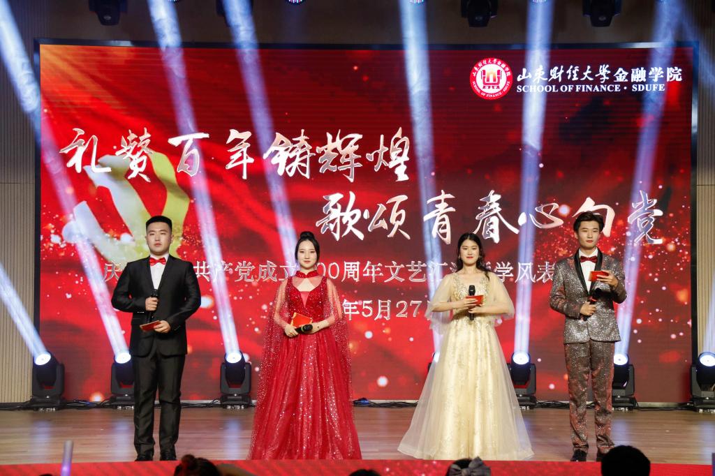 (通讯员:夏驰骜)一路风霜初心不变,百载砥砺换了人间。为传承红色基因,弘扬爱党爱国情怀,表彰优秀的金融学子,5月27日晚,免费成人影片 于圣井校区文化活动中心举办“礼赞百年铸辉煌,歌颂青春心向党”庆祝中国共产党成立100周年文艺汇演暨学风表彰大会,免费成人影片 党委宣传部副部长张艳霞、党委学生工作部副部长孙丽华、就业指导处副处长杜丽娜、免费成人影片 党委书记吴红文、院长彭红枫、党委副书记范志毅、工会主席杨丰国及学院全体辅导员、各兄弟学院师生代表近500人参加本次活动。
