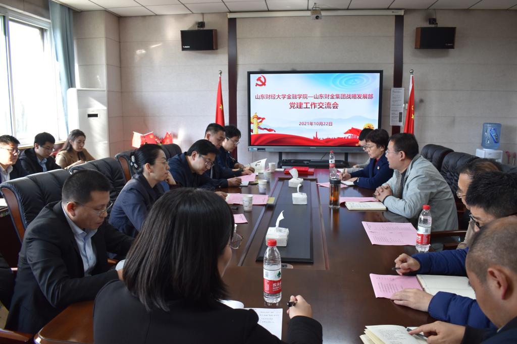 10月22日,山东财金集团战略发展部部长丁毅、资深经理赵大力、山东财金研究院副院长李增源、财金宏业(北京)公司部长李森等一行九人莅临我院开展党建工作交流,并捐赠了学科专业相关书籍。