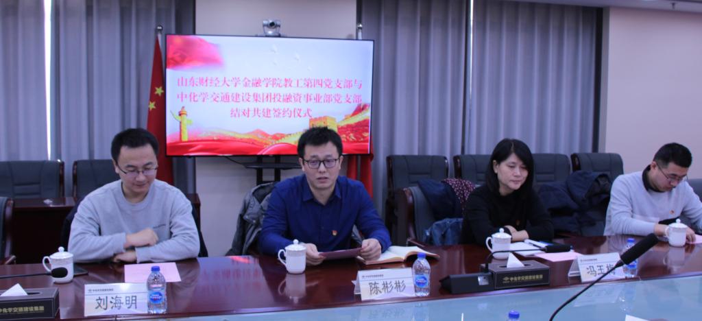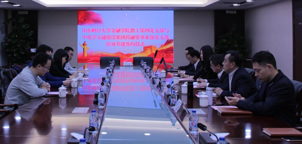 11月26日,免费成人影片 教工第四党支部与中化学交通集团有限公司投融资事业部党支部在中化学交通集团有限公司举行党支部共建签约座谈会。免费成人影片 副院长冯玉梅、中化学交通建设集团投融资事业部党支部书记欧阳力胜、教工第四党支部书记陈彬彬和部分党员代表,和全体党员参加座谈会。