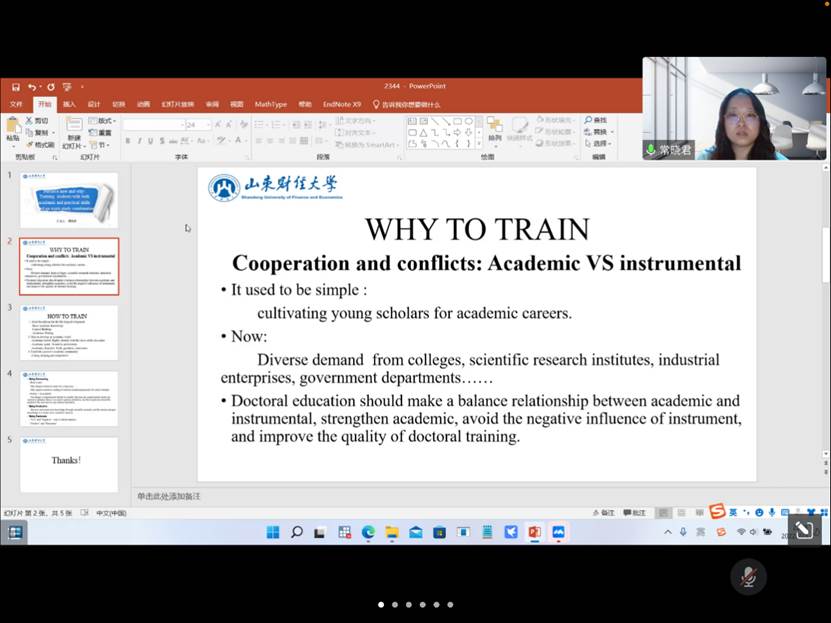 凌崚教授就学院如何在教学期间帮助学生提升个人素质和综合潜力的问题进行分享,指出目前学生在研究生期间主要存在的两大问题:1.目前大部分国内毕业生有扎实经济和金融学基础,但实务方面,具体分析某个公司和解决实际问题的能力有所欠缺。主要原因是校内生活太多,校外接触少,经验少,缺乏竞争力。2.目前的研究生在做科研时难找到有潜力的课题,读论文和找思路成绩不好。因此,要多参加社会活动,积累经验,提升个人综合素质。多阅读报刊和杂志,了解和社会经济运行的动态,开拓视野,提升学术兴趣和分析解决问题的能力。并以实际例子做出了说明,要多读多看多分析社会热点,提高对经济活动的敏感度,找到学术兴趣。