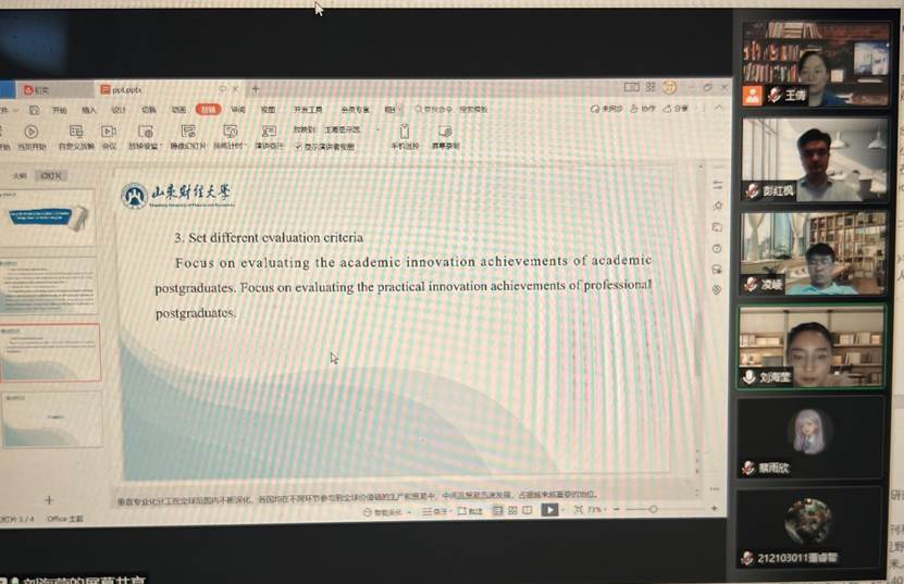 梁子敏同学就学科建设提出了追踪国际前沿,强化校外联合培育的主题,指出可以通过邀请境外学者来校讲学和开设暑期课程,创办研究生学术论坛,定期开办热点学术话题讨论班等内容。