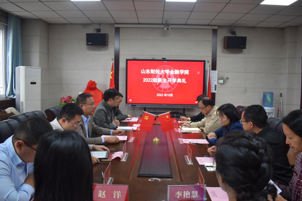 10月6日下午,免费成人影片 在舜耕校区金融楼314会议室采取线上线下相结合的方式举办2022级本科生开学典礼。免费成人影片 党委书记吴红文,院长彭红枫,党委副书记康亚通、李开传,副院长王营、王倩、肖祖沔,工会主席、办公室主任杨丰国,投资系副主任张笑玎及全体辅导员老师、2022级本科新生与会。开学典礼由学院党委副书记康亚通主持。