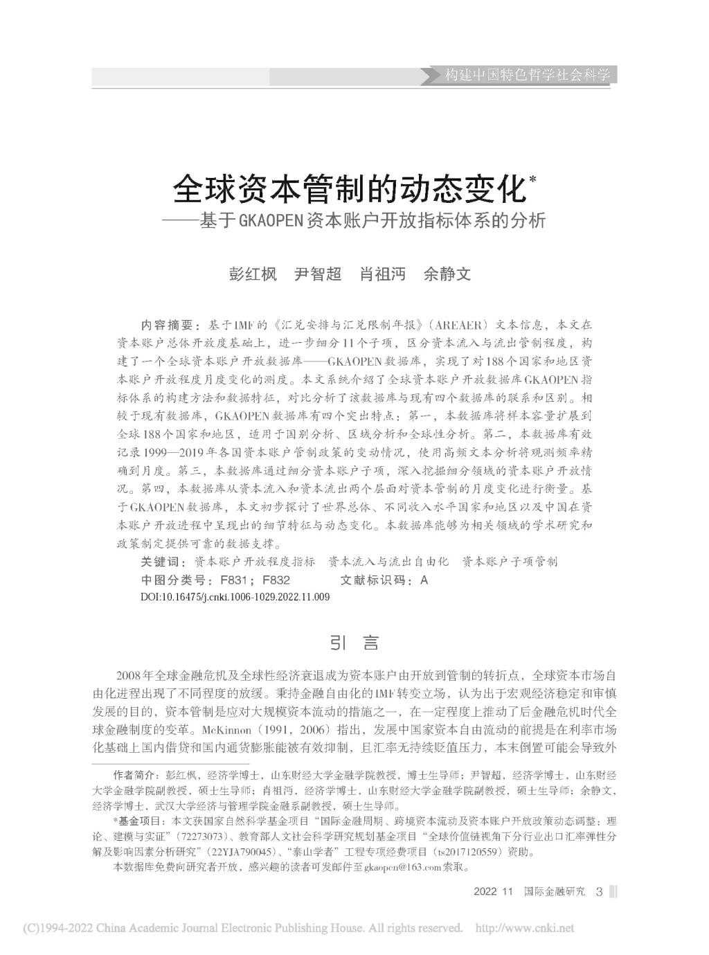 免费成人影片 彭红枫教授、尹智超副教授、肖祖沔副教授与武汉大学余静文副教授合作撰写的论文《全球资本管制的动态变化——基于GKAOPEN资本账户开放指标体系的分析》在《国际金融研究》2022年11期发表。该期刊属于我校A2期刊。