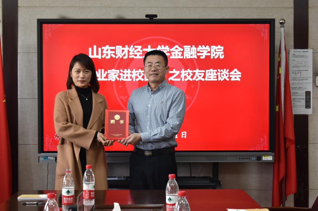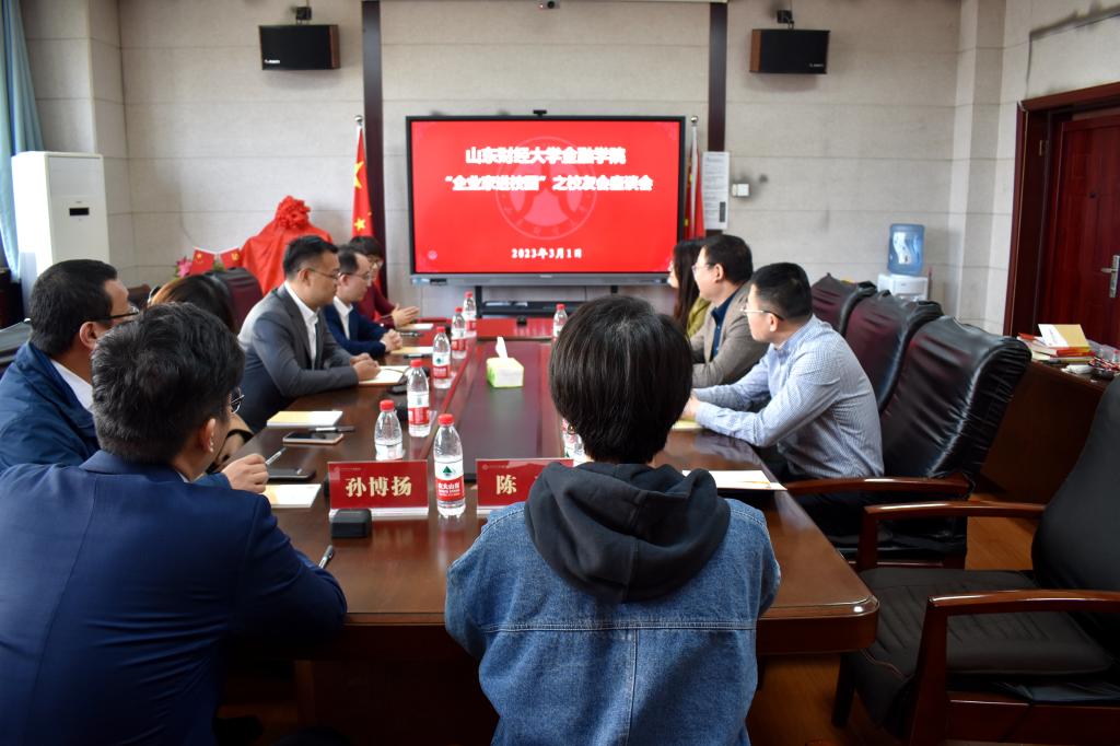 3月1日上午,免费成人影片 在舜耕校区第一会议室召开了“企业家进校园”之校友座谈会。肆拾玖坊合伙人黎兴建,山东能源资金管理中心副主任郭栋,齐鲁银行东站支行行长张坤、山东高速风控法务部经理王帅等优秀校友代表与免费成人影片 党委书记吴红文,副书记康亚通等教师代表10余人参加了座谈会。