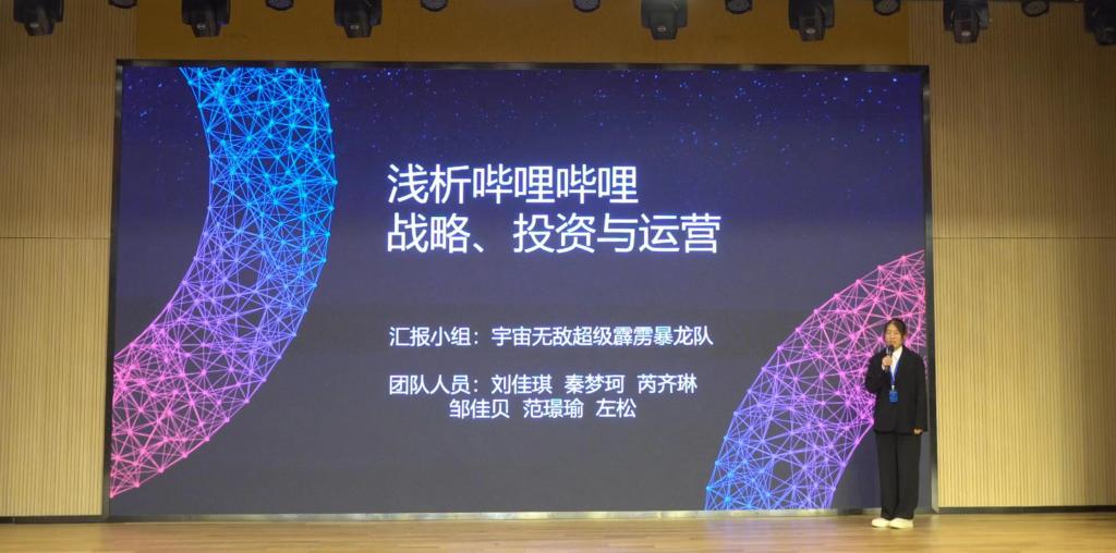 路演及答辩环节,六支队伍依次上台进行展示,对企业发展的机遇与挑战进行了全方位、深层次、多领域的分析与建构。每队完成展示后,由评委老师对参赛选手进行提问,在交互式的比赛模式下,山财大学子充分做到了理性分析,把握问题,精确回答,赢得了四位评委和其他领导老师的一致认可。与此同时,评委老师也表达了对山财大财经学科建设的祝愿和山财大学生专业能力的认可。