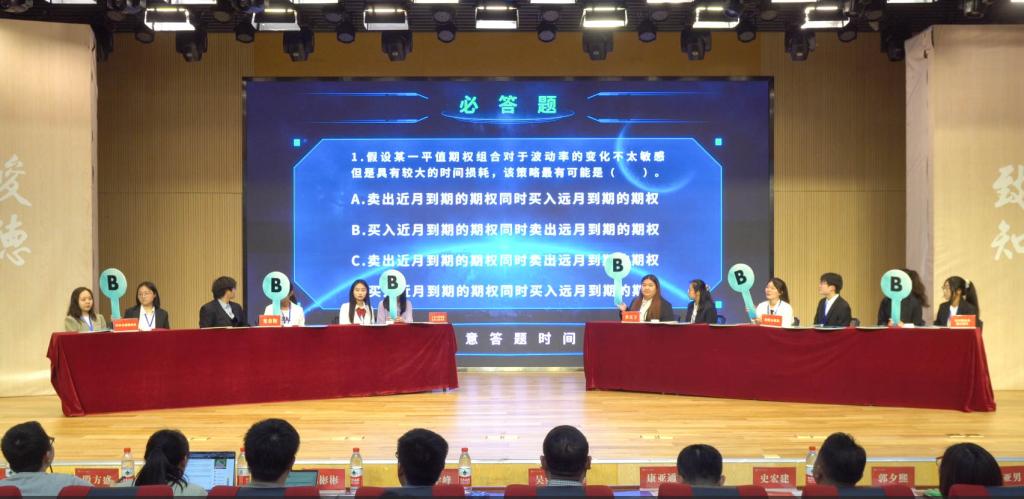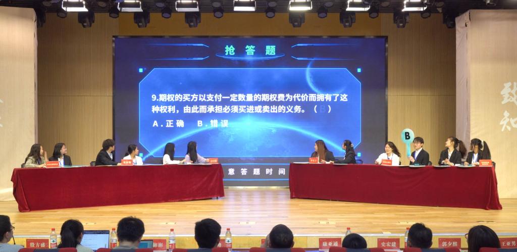第一个环节是答题环节,此环节分为必答题和抢答题两部分。必答环节,六支队伍的参赛选手反应迅速,以扎实的专业本领给出了精准的答案。抢答环节,各队伍更是进行了激烈角逐,以热情的精神面貌展现了财大学子的适应能力、转变能力和组织能力。