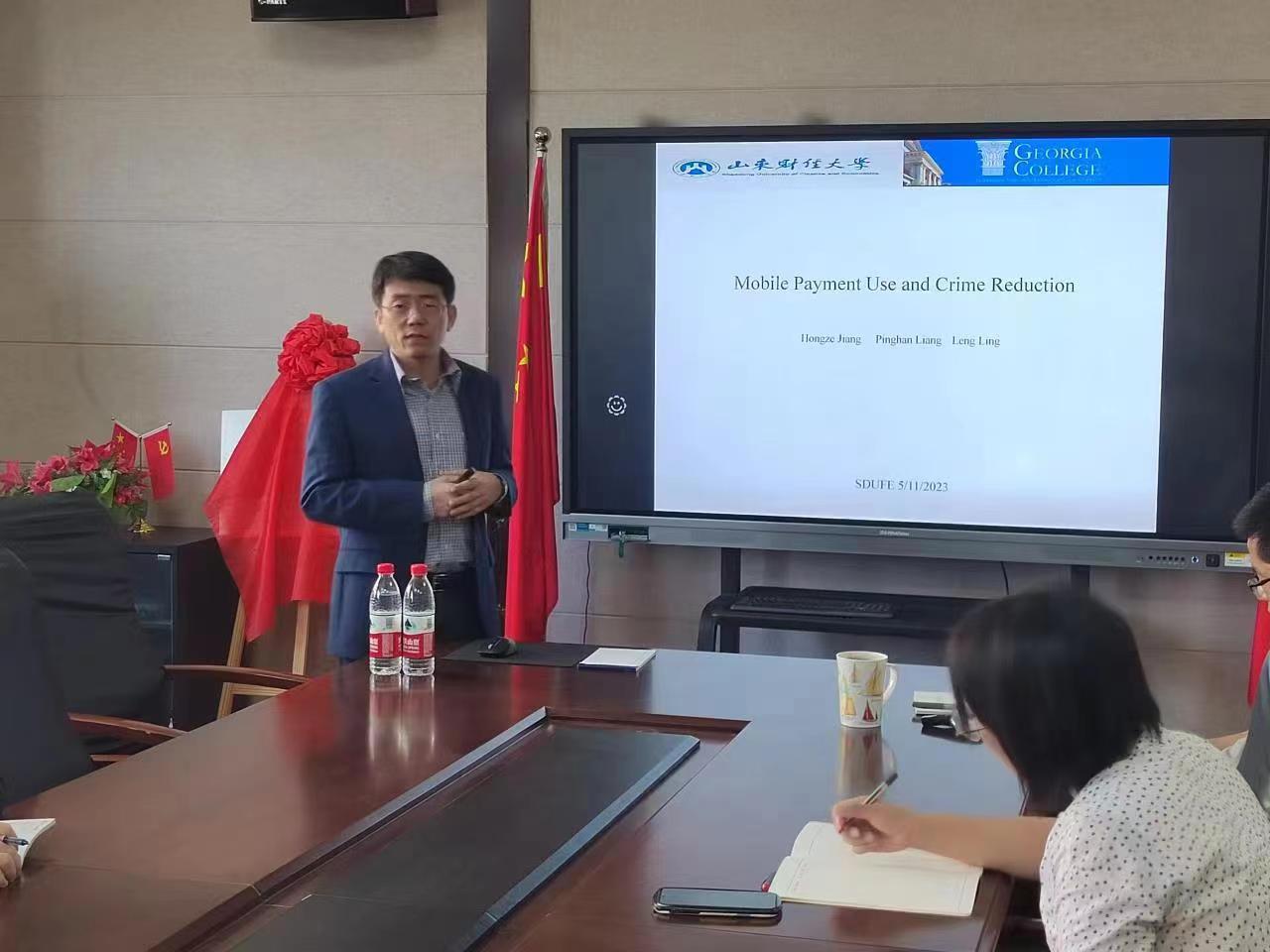 (通讯:曲诞雪)2023年5月11日上午,由免费成人影片 、免费成人影片 金融国际研究中心和山东省金融产业优化与区域管理协同创新中心共同主办的第32期“泰山金融讲坛”在舜耕校区6号楼314会议室举行。本次讲座邀请到了美国Georgia College & State University金融学终身教授、免费成人影片 特聘教授凌崚老师分享题目为“Mobile Payment Use and Crime Reduction”的科研成果。讲座由免费成人影片 副院长王营教授主持,部分教师和研究生到场聆听。