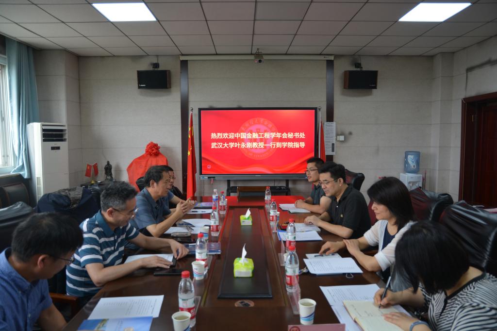 (通讯:耿鑫)6月28日上午,中国金融工程学年会秘书长叶永刚教授、武汉大学金融工程与风险管理研究中心主任宋凌峰副教授、金融工程教研室张培主任、金融系副主任刘勇副教授一行莅临我院,调研第二十二届中国金融工程学年会筹备情况。院长彭红枫、副院长王营、金融工程系冯玉梅教授以及会务组的宋晓蕾老师、耿鑫老师陪同调研。
