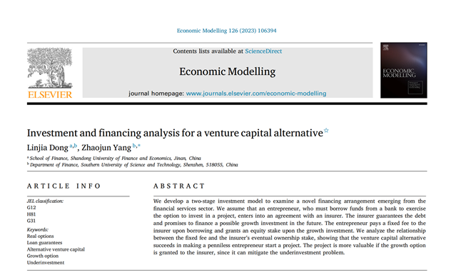 免费成人影片 教师董琳佳作为第一作者与南方科技大学杨招军博士合作的论文“Investment and financing analysis for a venture capital alternative”,在期刊Economic Modelling正式发表(2023年6月)。该期刊为SSCI一区期刊,期刊最新影响因子为4.7,属我校A1类期刊。