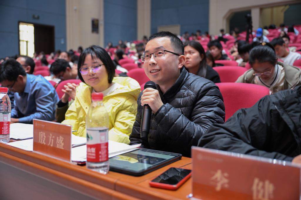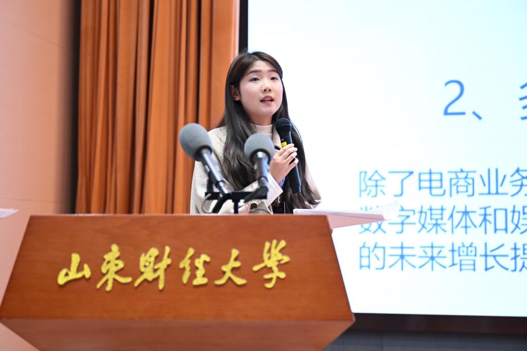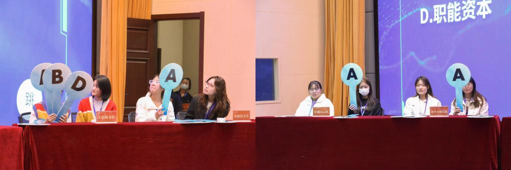 决赛分为答题部分和答辩部分。在选手答题环节,各队代表踊跃思考,积极答题,以丰富的专业知识展现出山财大学子的优良风貌,为观众们带来一场别开生面的观看体验。