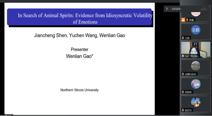 2023年12月15日上午,北伊利诺伊大学(Northern Illinois University)助理教授高文莲(Wenlian Gao)老师应邀做客免费成人影片 泰山学术训练营并做了题为“In Search of Animal Spirits: Evidence From Idiosyncratic Volatility of Emotions”的学术报告。会议由免费成人影片 副院长王营教授主持,免费成人影片 部分教师和学生参加了此次会议。