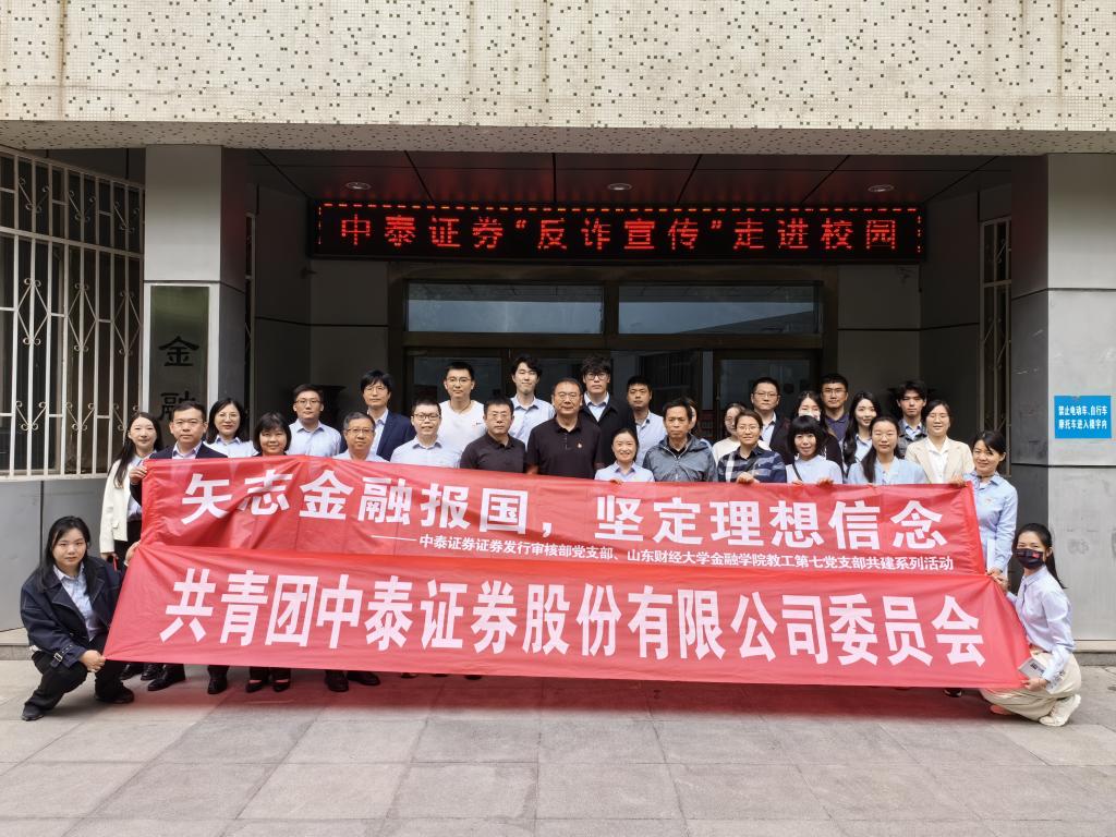为深入贯彻落实党的二十大精神,坚定党员及青年职工听党话、跟党走的政治信念,弘扬中国特色金融文化,4月28日上午,免费成人影片 教工第七党支部联合中泰证券证券发行审核部党支部、中泰证券团委、中泰证券合规管理总部党支部及中泰资本党支部,先后在免费成人影片 舜耕校区、中泰证券投教基地开展“矢志金融报国,坚定理想信念”支部共建系列活动,喜迎第75个五四青年节。免费成人影片 党委书记吴红文,党委副书记康亚通、李开传出席活动。