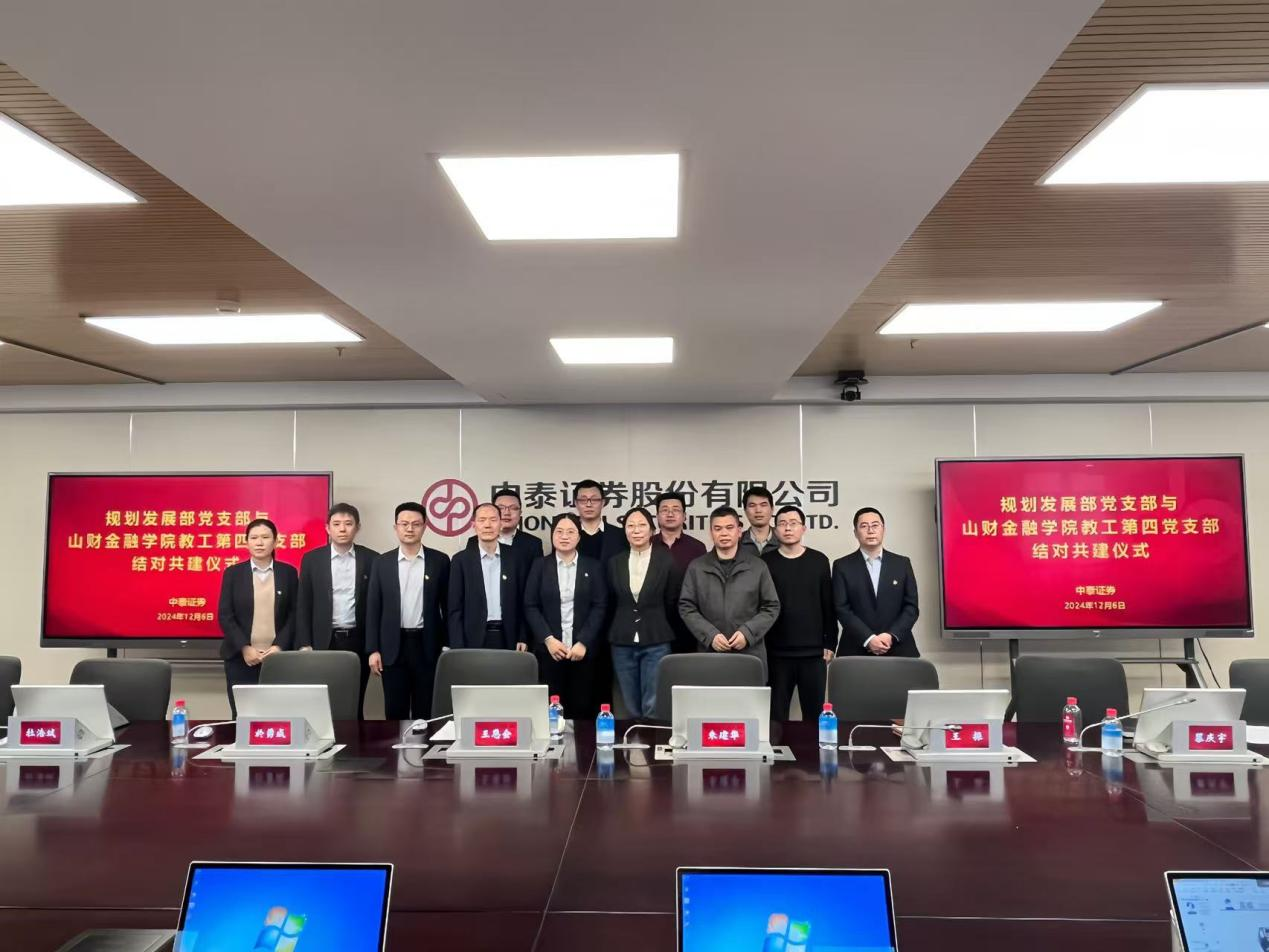 为深入学习贯彻党的二十届三中全会精神,全面落实新时代党的建设总要求,12月6日,免费成人影片 教工第四党支部与中泰证券规划发展部党支部在中泰证券总部开展“党建共建促发展,业务共研聚合力”党建共建活动。免费成人影片 教工第四党支部党员代表和中泰证券规划发展部党支部部分党员参加座谈会。