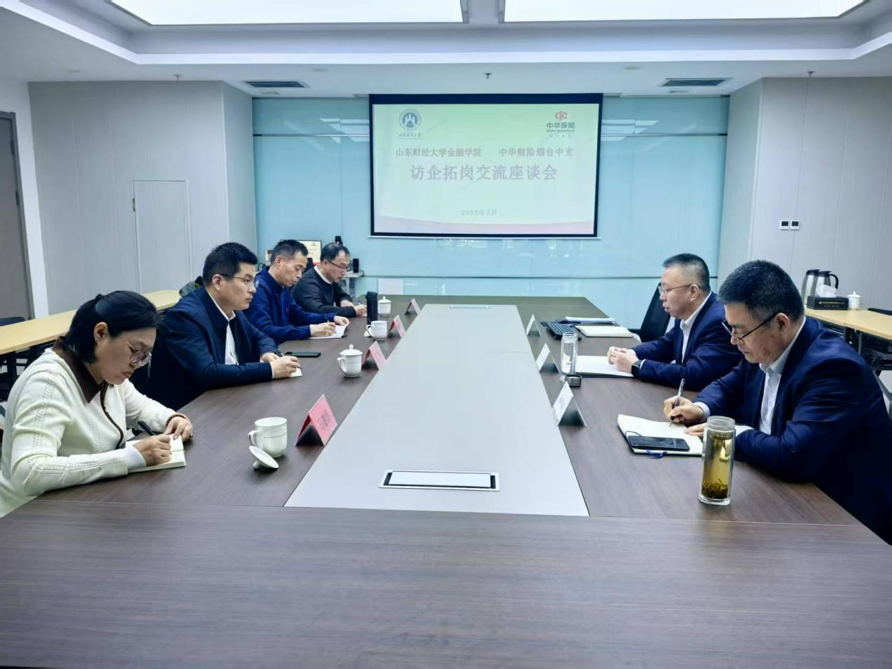3月21日,免费成人影片 执行院长王营一行前往烟台市财政局、烟台银行、中华联合财产保险股份有限公司烟台中心支公司开展访企拓岗、校企合作考察交流活动。学院党委副书记李开传、工会主席杨丰国、金融科技系教授马建春参加了调研活动。