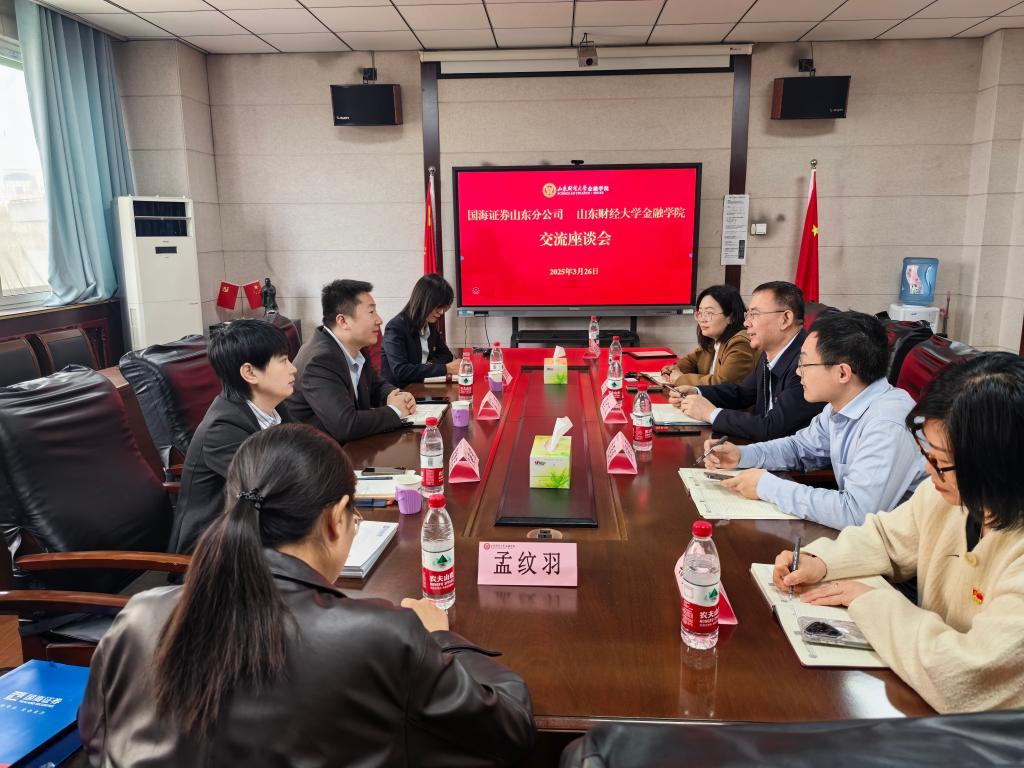 国海证券作为证券行业的中坚力量,综合实力强,业务覆盖广泛,在资本市场积累了丰富的实践经验。此次交流为双方搭建起优势互补、资源共享的重要桥梁,校企有望在党建共建、课题研究、财商教育、社会实践基地等方面落实合作,共同促进产学研深度融合,服务山东经济社会发展。