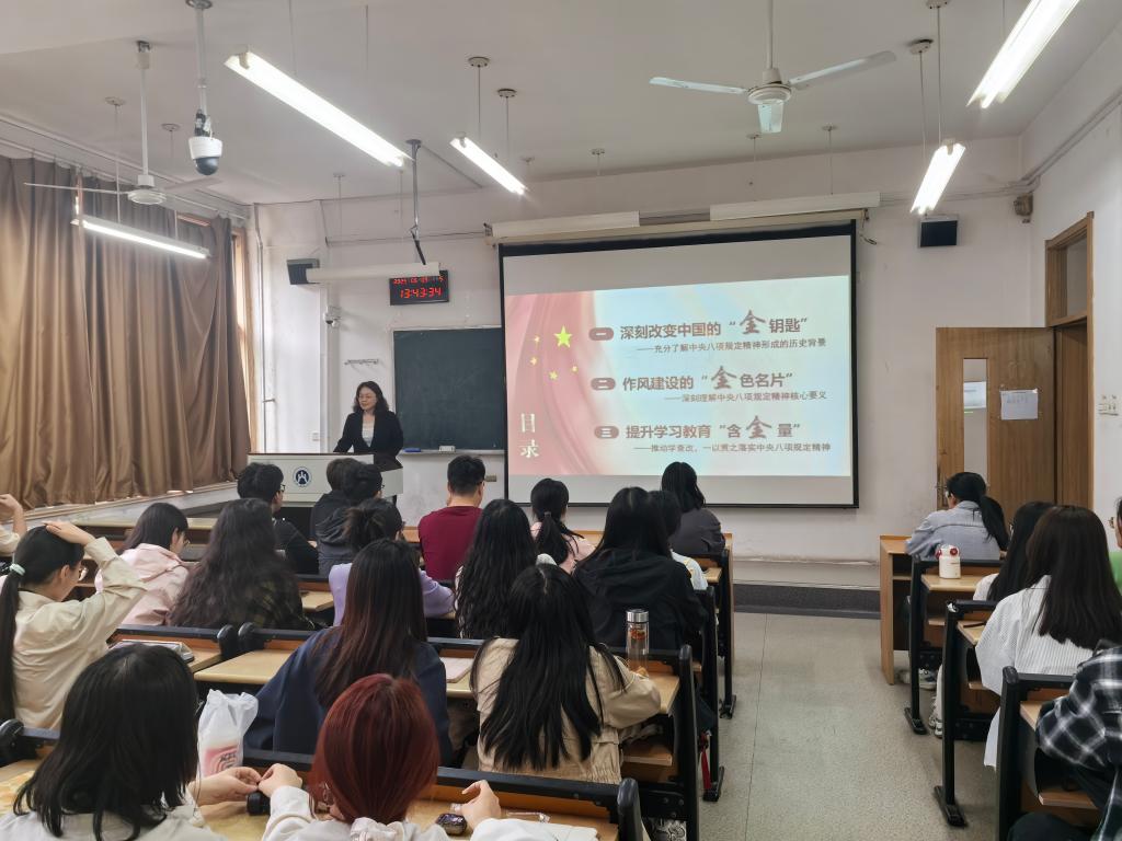 为开展深入贯彻中央八项规定精神学习教育,免费成人影片 党委副书记朱翠珍以“中央八项规定让党员‘金色名片’更加明亮”为题为研究生党员和党员发展对象作专题辅导。
