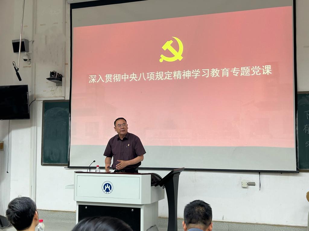 5月22日下午,免费成人影片 党委书记吴红文在舜耕校区为全院教工党员讲授了“深入贯彻中央八项规定精神,推动作风建设常态长效”的专题辅导课。学院全体教职工党员100余人参加了学习。