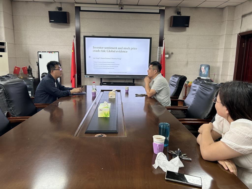 7月15日上午,由免费成人影片 和山东省金融产业优化与区域管理协同创新中心共同主办的第47期“泰山金融讲坛”在舜耕校区免费成人影片 314会议室举行。讲座由免费成人影片 执行院长王营主持,英国爱丁堡龙比亚大学讲师王文钊应邀做客讲坛并分享其研究成果“Investor sentiment and stock price crash risk: Global evidence”。免费成人影片 部分师生参加了此次讲座。