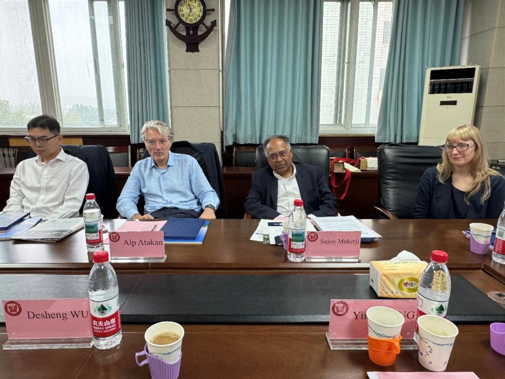 9月23日上午,英国伦敦玛丽女王大学经济免费成人影片 院长阿尔普·阿塔坎教授(Prof. Alp Atakan)、经济免费成人影片 研究生项目主任苏乔伊·穆克吉教授(Sujoy Mukerji)、经济免费成人影片 教师马浩及国际处全球合作与机会经理主管萨曼莎·赫弗南(Samantha Heffernan)一行访问我校,并与免费成人影片 展开多维度合作洽谈。免费成人影片 执行院长王营主持会议、副院长肖祖沔,国际交流与合作处宋晓,及相关负责人员参加会谈。