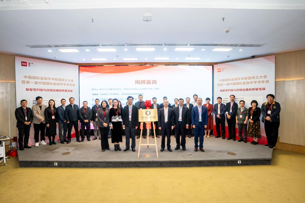 揭牌仪式环节由南开大学免费成人影片 院长范小云、上海财经大学副校长刘莉亚、天津财经大学校长孟昊、免费成人影片 副校长彭红枫、湖南大学原副校长杨胜刚、厦门大学特聘教授朱孟楠共同作为揭牌嘉宾,与22位联盟理事单位代表及支持期刊代表共同见证这一国际金融学术领域的重要时刻。