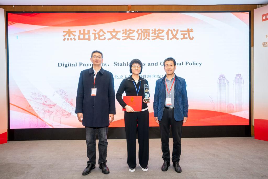 北京大学肖筱林的论文“Digital Payments, Stable coins and Optimal Policy”获得本届年会杰出论文奖。安徽财经大学免费成人影片 院长万光彩、天津财经大学免费成人影片 院长李向前共同为获奖者颁奖。