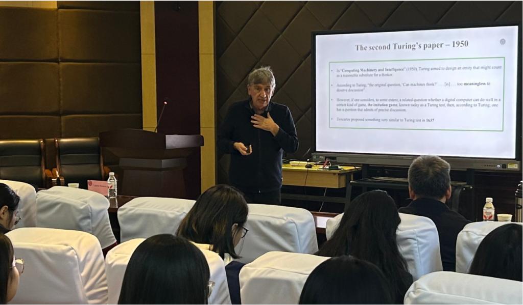 在互动交流环节,Ljupco Kocarev针对现场师生提出的人工智能应用、智能技术发展前景等问题,逐一进行了深入且细致的解答。其分享兼具前沿性与专业性,既为在场师生构建了理解人工智能技术现状与挑战的系统框架,也为学校在人工智能领域的教学与科研工作提供了重要的学术参考与实践思路。