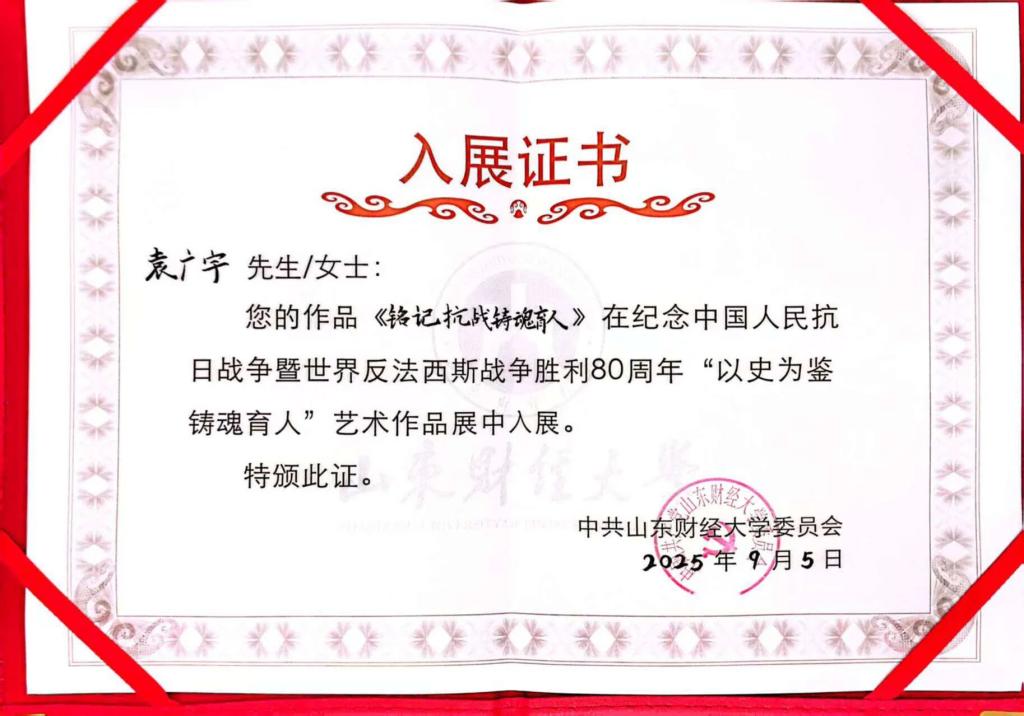 近日,在我校举办的纪念中国人民抗日战争暨世界反法西斯战争胜利80周年“以史为鉴 铸魂育人”艺术作品展中,免费成人影片 两名学生的作品成功入展,展现了新时代青年铭记历史、传承精神的责任担当。