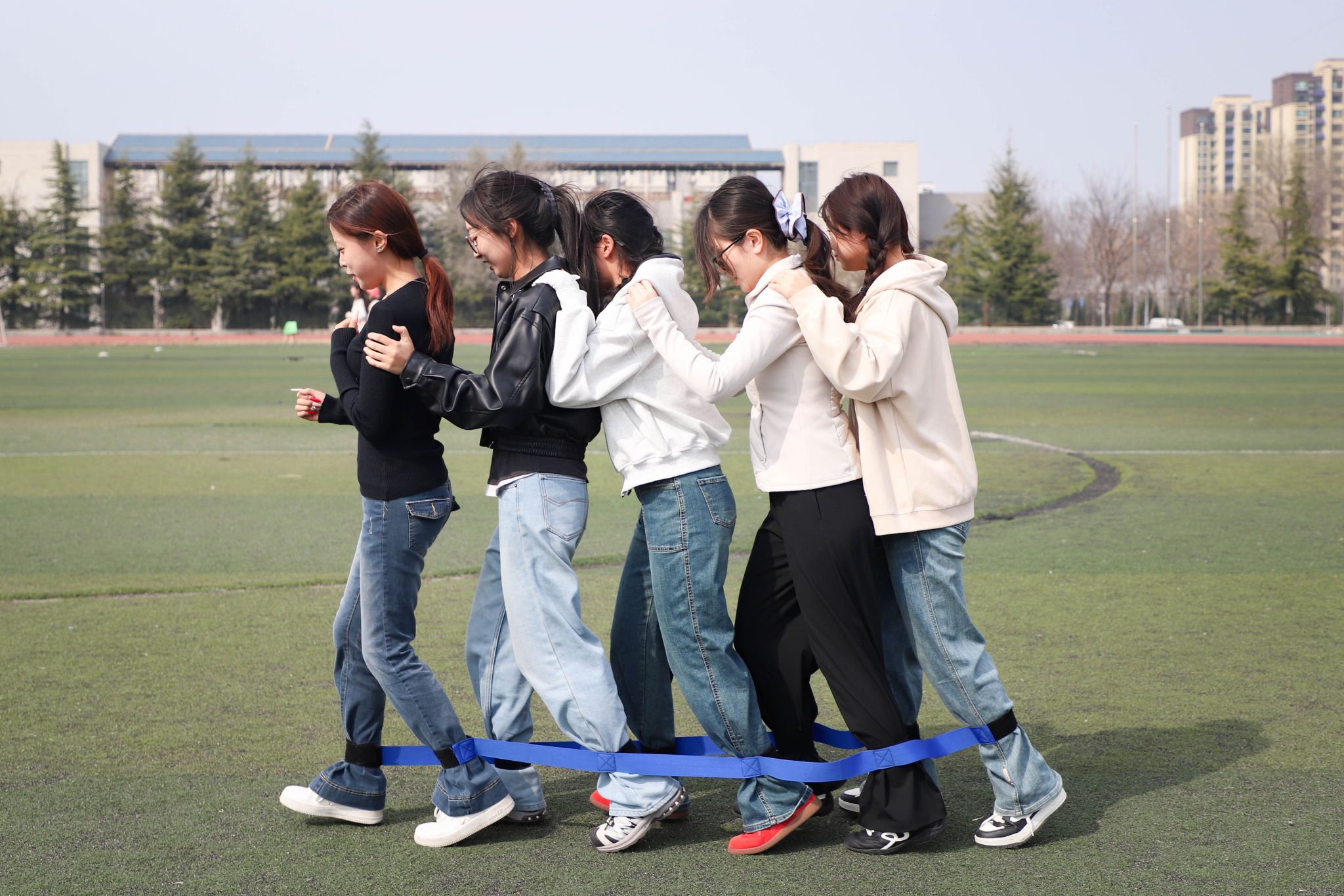 趣味比赛现场欢声笑语不断,动作传声筒、巨人脚步、旋风疾跑等项目,将协作与趣味深度融合。队员们心往一处想、劲往一处使,在默契配合中攻克难关,趣味项目接力更是集多样挑战于一体,学子们奋勇争先,尽显团队凝聚力。