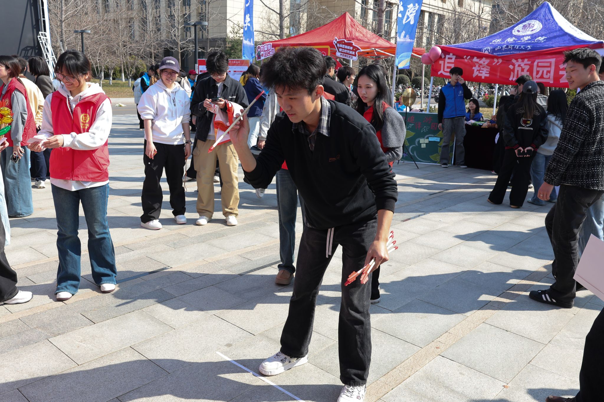 活动精心设置了财富知识互动小游戏,现场热闹非凡。志愿者们精心设置了Bingo连线、金融知识归类等环节,以游戏闯关的形式引导参与者快速掌握理财常识、金融风险防范等实用内容。同学们积极参与、踊跃答题,在轻松欢乐的氛围中解锁金融知识。投壶活动同样精彩,参与者凝神投箭,体验传统雅戏,现场欢声笑语不断,既传承传统文化,也增添了互动乐趣。完成游戏挑战的参与者可获得精美小奖品,进一步提升了活动的趣味性与参与感。