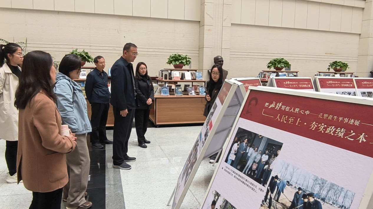 全体人员在图书馆大厅集合后,在讲解员的引导下有序观展。本次展览以政绩在人民心中为主题,通过坚守信仰、人民至上、实干担当、清正廉洁、精神永续五个篇章,系统展现了孔繁森同志对党忠诚、服务人民、实干担当、廉洁奉公的光辉事迹与崇高精神,生动诠释“共产党员的政绩,永远写在人民群众的心坎上”的深刻内涵。