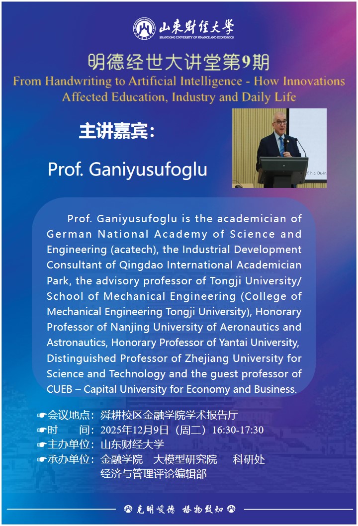 Prof.Ganiyusufoglu is the academician of German National Academy of Science and Engineering (acatech),the Industrial Development Consultant of Qingdao International Academician Park, the advisory professor of Tongji University/School of Mechanical Engineering (College of Mechanical Engineering Tongji University), HonoraryProfessor of Nanjing University of Aeronautics and Astronautics, Honorary Professor of Yantai University,Distinguished Professor of Zhejiang University for Science and Technology and the guest professor of CUEB-Capital University for Economy and Business.