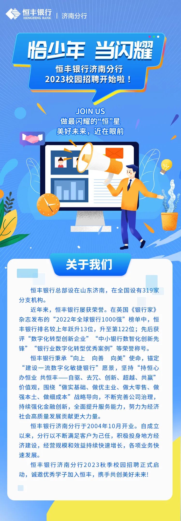 招聘启事丨恒丰银行济南分行2023校园招聘开始啦!