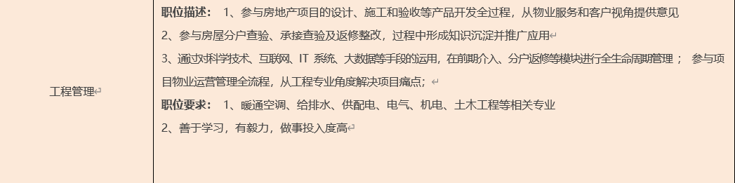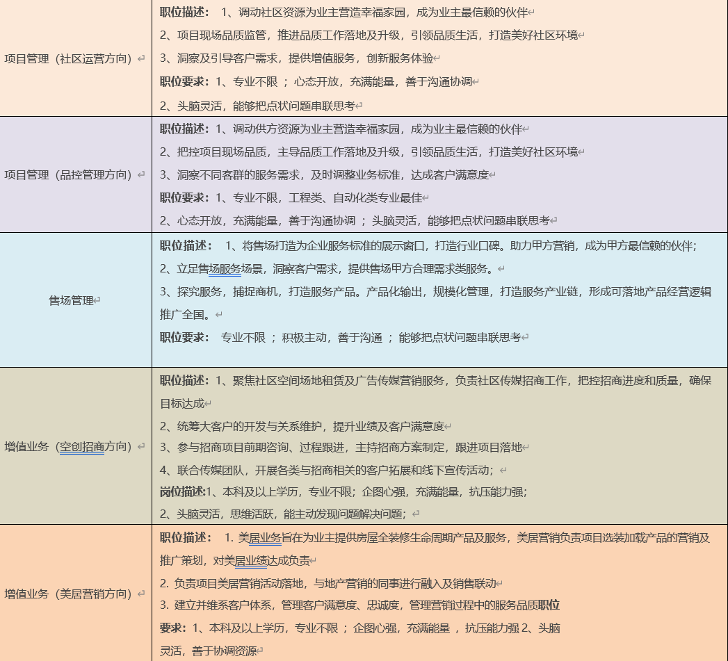 项目管理(社区运营方向)、项目管理(品控管理方向)、售场管理、商写客服