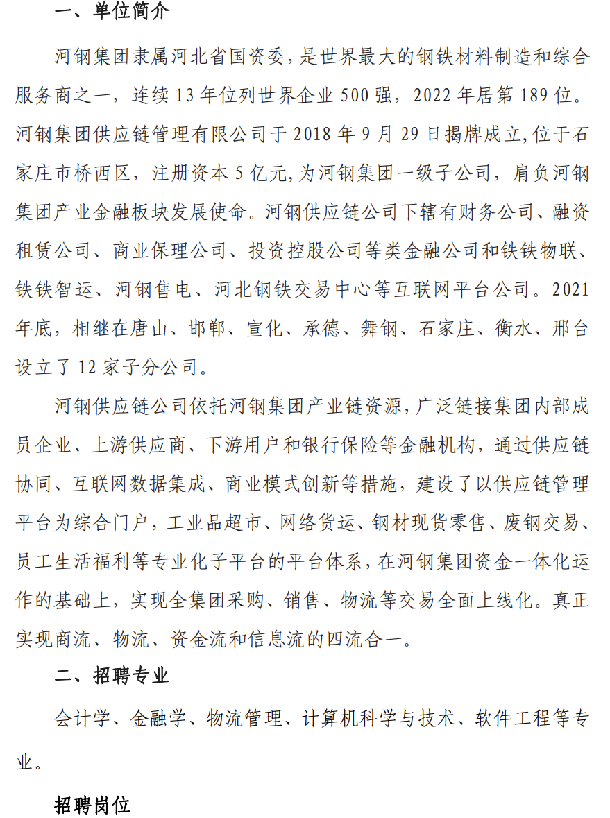 河钢集团供应链管理有限公司 2023 校园招聘简章