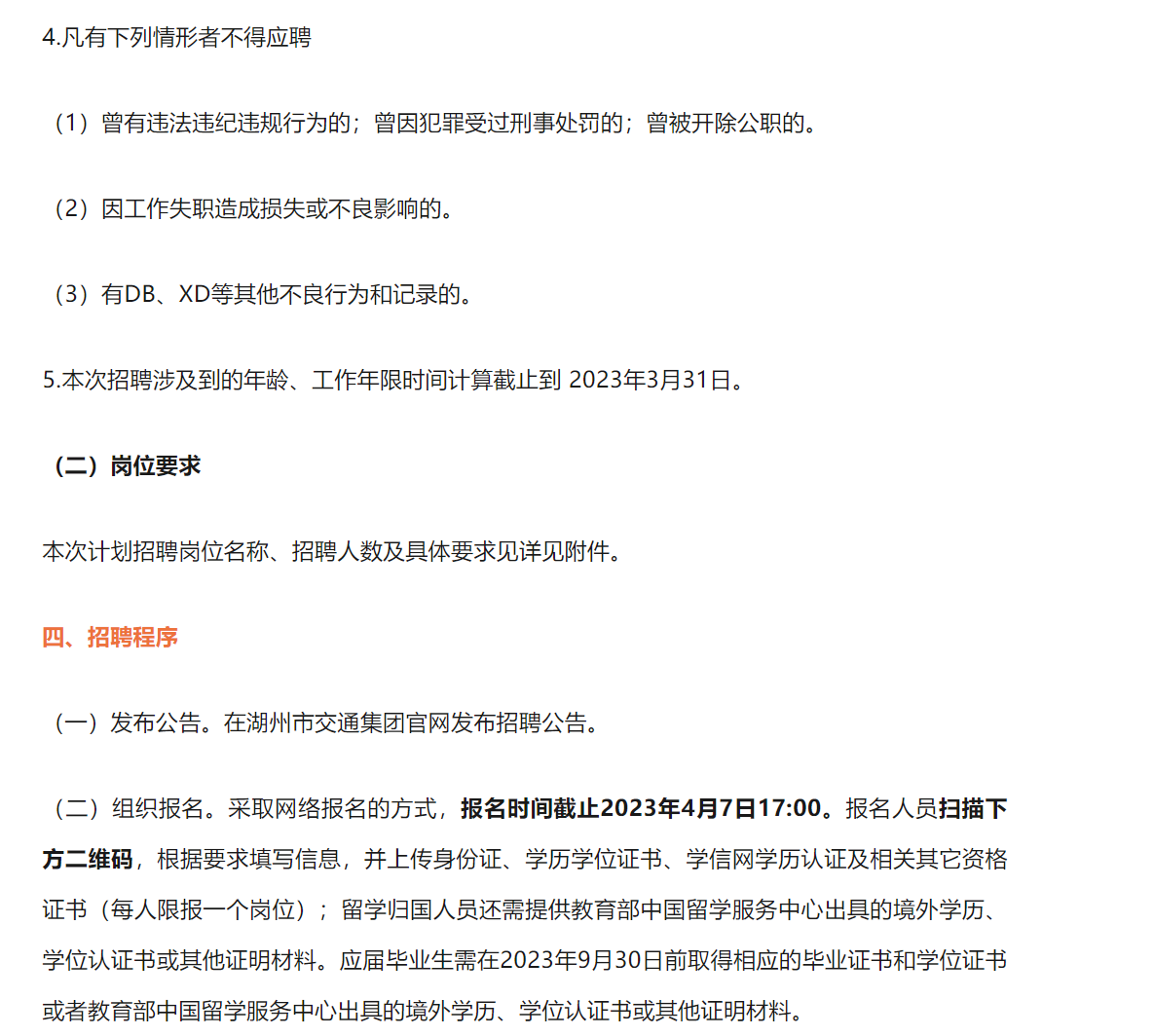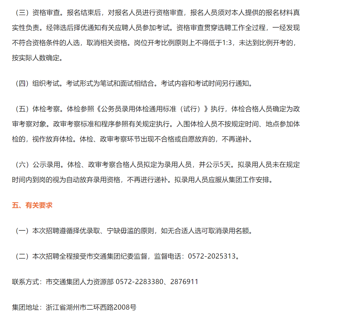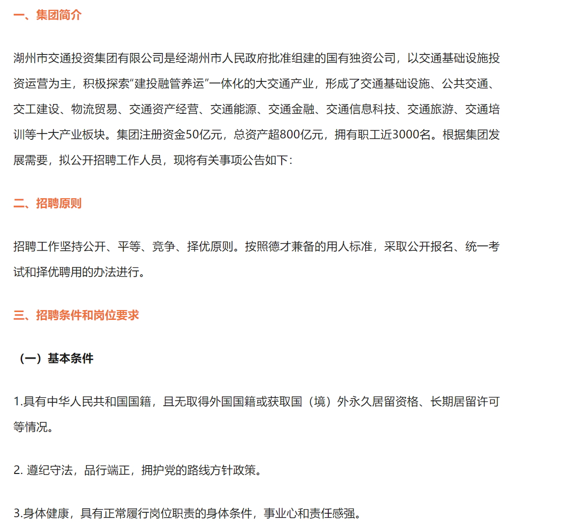 湖州市交通投资集团(国有企业)2023上半年招聘工作人员