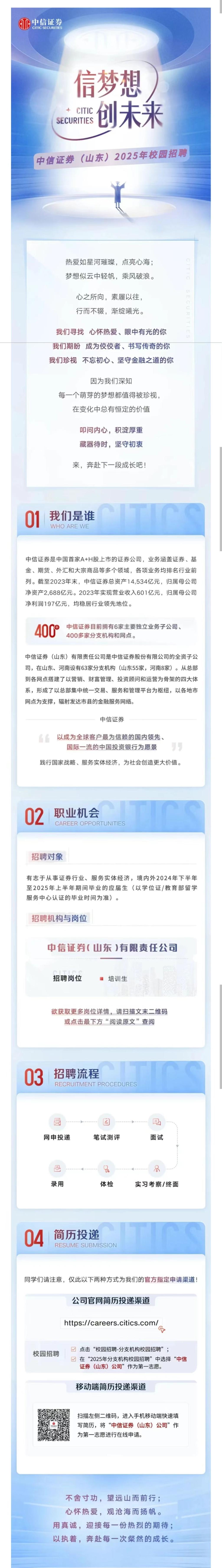 信梦想,创未来丨中信证券(山东)2025年校园招聘全面启动!